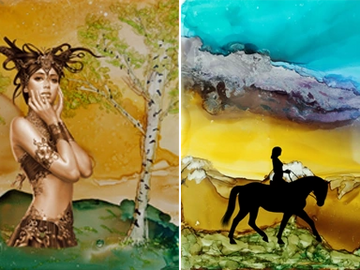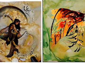 We produce unique, one-of-a-kind Alcohol Ink Designs on Porcelain & Ceramic Tiles - sizes are 6 x 6" - 4 x 4" - 6 x 3" - 10 x 4" mainly, but we also do Custom sizes. You can choose your backing from: Wall-mount, Desktop/Bookshelf Stand, Fridge Magnet, Trivet or Coaster.